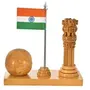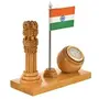 • Contain : Wooden Handmade Carved Ashok stambha Pen Stand with Clock & Flag