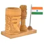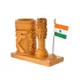 • Contain : Wooden Handmade Carved Rupee Design Ashok stambha Pen Stand with Flag