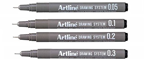 The Artline combo of 4 drawing pens is ideal for architecture design illustrations graphic designing and documentation. Special water proof pigment based ink makes it permanent and water proof on any kind of paper.