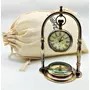 BEHAT BRASS WIND CHIMES - HANGING BELLS Antique Victoria London Table Clock with Maritime Vintage Brass Compass (Brown)