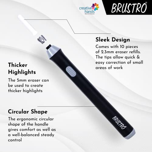 BRUSTRO Automatic Electric Rubber Eraser | Ideal for Kids and Adults, Drawing, Sketching, Mandala, Portrait | Battery Operated | 2.3mm, 5mm| 22 Refills, 2 Eraser Holders | (Batteries not Included)