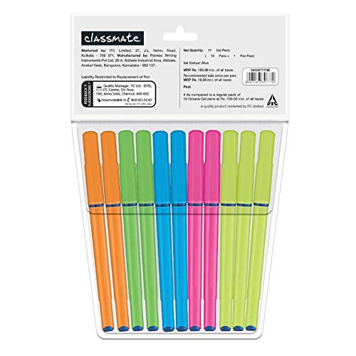 ITC Classmate Octane Neon Blue Gel Pens available in 5 attractive body colours for boys and girls offer smooth writing experience and comes with Japanese water-proof ink for smudge-free writing. The pens are preferred by students for exam and class notes and ideal for study at home purposes.