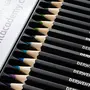Derwent Academy Watercolor Pencils 36-Ct. Metal Tin View LargerDerwent Academy Watercolor Pencils offer an ideal introduction to the world of paint and wash for kids of all ages. Its really like having two types of pencils in one. Draw your subject with a dry pencil. Then shave off a little of the color from the pencil and dissolve it in water. Now you have the perfect wash. Blend the colors together to create new ones and incorporate found items from your surroundings into your work like salt paper and photographs to add areas of interest.The 3.3 mm core offers vivid blendable color laydown and the selection offers a range of color for unlimited creative options. This larger core size packs in more pigment and also offers a more stable grip for little budding artists.Use them wet or dry on wet or dry paper to achieve a variety of effects from bold vibrant images to delicate watercolor washes. For sheer versatility in your creative work watercolor is an unmatched medium. The convenient pod container secures your pencils just like a pencil case.Derwent Academy Watercolor Pencils allow you to create in a variety of ways:Dry pencil on wet or dry paper - Creates a firm line on dry paper and becomes spread out with soft edges on wet paper.Wet pencil on wet or dry paper - Creates a soft-edged line for more ethereal renderings such as sky and water.Dry pencil and wash-over with a wet painbrush - Creates almost any visual effect with soft or hard edges. View LargerDerwent HeritageSince 1832 Derwent has been inspiring amateur and professional artists with an exceptional range of innovative fine art materials.Related Products Academy Colored Pencils by Derwent 12-Ct. PodGenerous round barrels and quality pigment. Academy Watercolor Pencils 12-Ct. Metal TinThe ideal introduction to watercolor. Academy Watercolor Collection 24-Ct. Metal TinColors blend and dissolve easily. Academy Skintone Watercolor Pencils by Derwent 12-Ct. Metal TinA great introduction to coloring drawing and illustration. Derwent Canvas Pencil Wrap 30 Pencil CapacityHolds up to 30 of your favorite drawing pencils. Derwent Battery-Operated SharpenerSharpens up to 5 different pencil diameters.