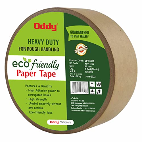 Great Substitute for Plastic Tapes: Oddy Brown kraft paper tape is a great substitute for regular plastic packing tapes while serving the same purpose and it is completely recyclable too! Works perfectly on Cardboard/Corrugated boxes: Oddy tape works perfectly on Cardboard/corrugated boxes as it is coated with very high quality adhesive and seals the boxes securely for transportation.