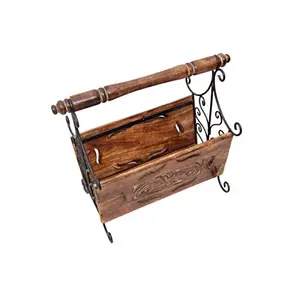 Wooden & Iron Magazine Holder with...