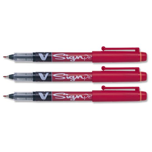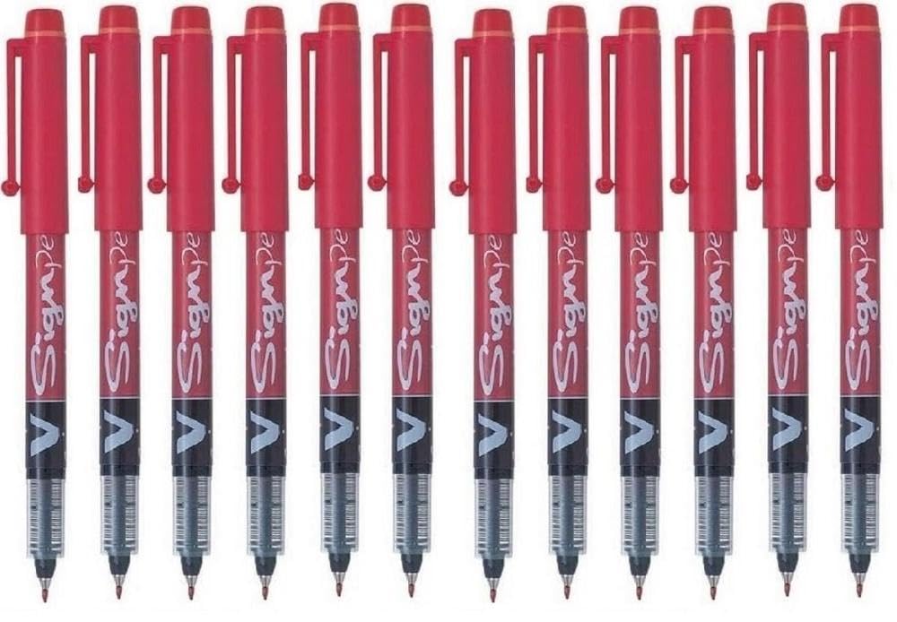 Pilot V Sign Pen Liquid Ink 2.0 mm Tip - Red, Box of 12