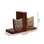 This Owl book end has been delightfully created in the sheesham wood. The owl has been perfectly engraved. It helps organice the books. It tends to be utilized on the book racks giving it an edge. The characteristic dark colored shade of the sheesham wood gives it a tasteful look. Highlights: a) Can be utilized on book racks. b) Wooden Engraving has been done on the book end c) Handcrafted in Sheesham Wood d) Comes in Brown shading e) Comes in 10.9" (L) * 4.8" (W) * 7" (H) size. f) Gives a tense look to the book rack. Craftsmanship Type: Wooden Engraving Note: Wood may have checks or fixes which are normal. Care Instructions: Dust off with a dry muslin fabric to expel flotsam and jetsam. Bundle Content: 1 Book End Set.