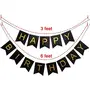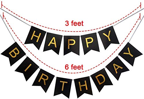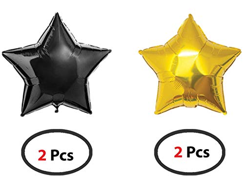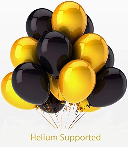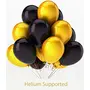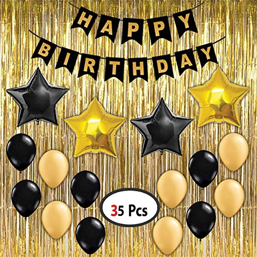 Branded Happy Brthday Black Banner (Ribbon included for Hanging) with 30 Metallic Gold/Black - 15 pcs each Balloons + 2 Golden Star Foil Balloon + 2 Black Foil Star Balloon + 2 Golden Curtains. A complete and perfect Brthday decoration kit. (Pack of 35)