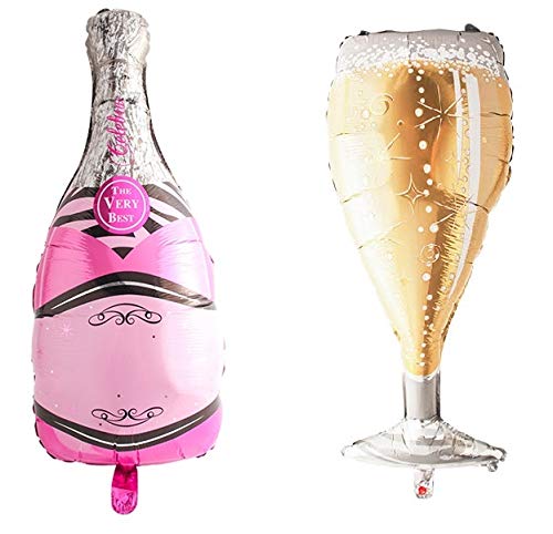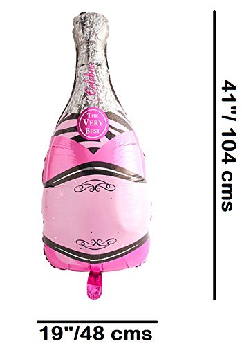 Krisah 1 pcs Champagne/Wine Pink Bottle and 1 pcs Wine Glass Foil Balloons XL Size