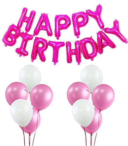 Evisha 13 Letter/Alphabet Pink Foil Aluminium, 50 Pink and White Latex Metallic Balloons
