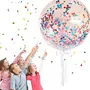 The balloons that are shown in the picture are transparent . The ones received are milky white. The confetti is barely visible.