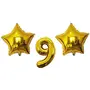 Evisha 1 pcs Number Foil Balloons and 2 pcs Star Golden Foil Balloons (Set of 3 Balloons) Size : 16" (9-Stars)