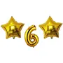 Evisha 1 pcs Number Foil Balloons and 2 pcs Star Golden Foil Balloons (Set of 3 Balloons) Size : 16" (6-Stars)