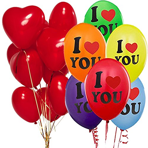 • Pack of 20 I love colour printed balloon and 50 red hert shape latex balloons