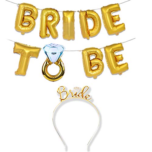 Party Propz Bridal Shower Decorations Kit - 2 Pcs Bachelorette Party Decorations With Bride To Be Foil Balloons And Bride To Be Crown | Bride To Be Decoration Set Combo With Crown | Ring Foil Balloon