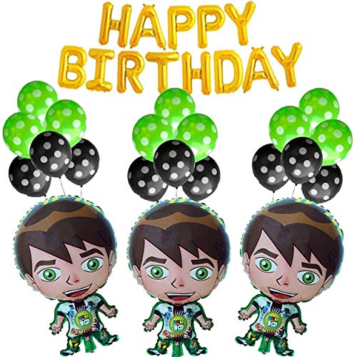 Masti Zone 3 Pcs Cartoon Character Foil Balloons with 1 Pcs Happy Birthday Banner and 30 Polka Dot Balloons (15 Black + 15 Green Polka DOT) for Birthday