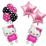 Masti Zone 3 Pcs Cartoon Character Hello Kitty Foil Balloons with 2 Pcs Star and 30 Pink Black Polka Dot Balloons