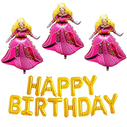 3 Pcs Cartoon Character Princess Foil Balloons with 1 Pcs Happy Brthday Banner for Girls KDs Brthday