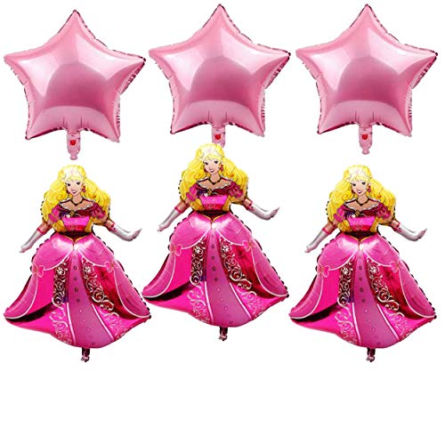 3 Pcs Cartoon Character Princess Foil Balloons with 3 Pcs Pink Star for Girls KDs Brthday Theme Part