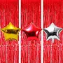 3 Pcs Red Metallic Foil Curtain with 3 Pcs Red Star Foil Balloon Christmas Xmas Party Decoration