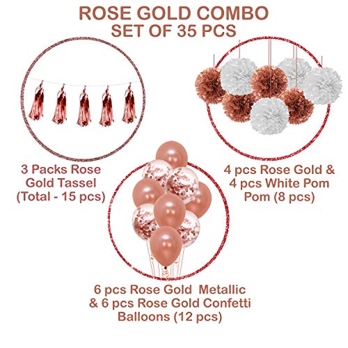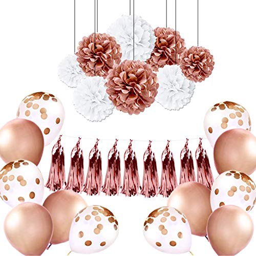 Color:Rose Gold PomPom Decoration combo | Size:Set of 41This party decoration set can be applied for a Brthday party wedding party bridal party Small shower party and Christmas add some vigor and create a happy atmosphere to your parties