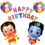4 Pcs " 18 " Multicolour ( 2 Little Krishana Bal Gopal +2 Hanuman) Foil Balloons With 1Pcs Happy Brt