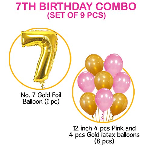 Color:Number 7 | Size:Set of 9Package include 1pc number one golden foil balloon 4pcs pink and 4pcs gold latex balloon. High Quality party supplies set for all of the ages. These balloons are good combinations to have a convenient yet impressive party decoration for everyone. Number 1 foil balloon high Quality Foil Balloon is thickened It can be used repeatedly automatic sealing. Please be gentle and careful when inflate the balloons not too much air and dont be too fast especially using a pump. Do not put the decorations close to the fire.