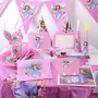 Package includes 102 Pcs Set with 1 Sofia Table Cloth 1 Sofia Banner 10 Plates spoons knives forks napkins candy boxes invitations khoi bags Glasses and Straws all suitable for a party of 10 People