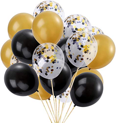 Color:Black-goldenAwesome collection of confetti balloons for every occassion to make them memorable and special. A must have for all Brthday parties to make them awesome and memorable . Supplied uninflated. Simple to use. Adds lots of class and colour to your Brthday party and celebration. Can be used as a backdrop or Brthday decoration for Brthday decoration Can Be Used With Normal Air or Helium Air. Best To Surprise Someone Special For You. Foil balloons will stay inflated with helium between 6-8 hours and 8-10 hours with air. Tie a curling ribbon below the valve of the foil balloon rather than above to prevent air or helium leakage. Confetti balloons will typically stay inflated between 10-12 hours with air or 8-10 hours with helium. Conduct static electricity by rubbing a soft cloth against balloon so the confetti clings to the balloon walls. Generally 12-inch latex balloons filled with helium will float between 6-10 hours. B For outdoor displays under-inflate the balloon by first over-inflating the balloons then releasing gass so the balloon can easily expand later to the weather.