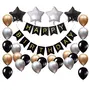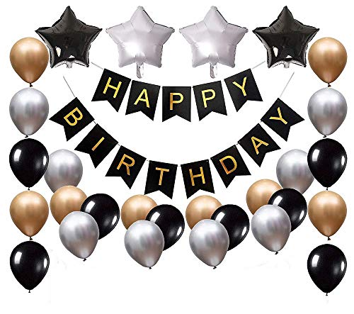Brthday Decorations Brthday Party Supplies for Women and Men Bday Decor Include Foil Star Balloon Black and Gold Happy Brthday Banner Latex Silver Balloons