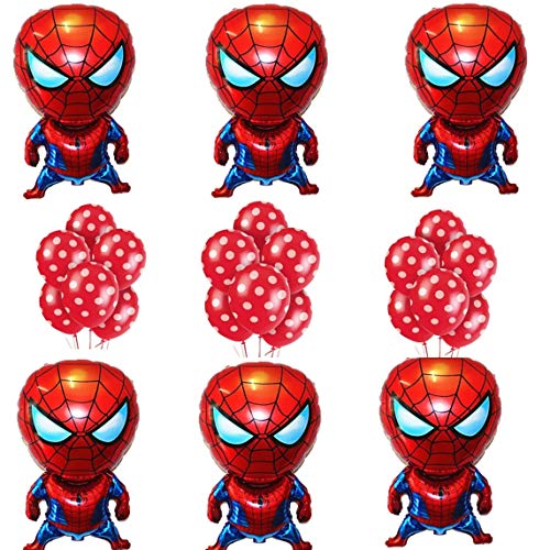 Size:Pack of (6+30) | Color:Spiderman+Red polka dot6pcs Spiderman Large Size Long Lasting Fine Finish Foil & 30 Pcs Pink Polka Dot Balloons