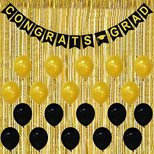 Are you planning to give the graduates an unforgettable graduation party? This Congrats Grad kit won't fail you to express celebrations of your special graduates or graduating class! This shiny Congrats Grad kit is perfect for any grad party you want at home or outdoor! What you will get: 1. Congrats Grad Banner Pack of 1 Study Cardstock 2. Foil Fringe Curtains Pack of 2 Gold 1 x 2m 3. Black Latex Balloons Pack of 15 9inch Helium Supported 4. Gold Latex Balloons Pack of 15 9inch Helium Supported Suggested Uses: Beautiful Decorations for Graduation Photo booth Props and Centerpiece Backdrop Re-use several times for variety of occasions Great for home and office school or outdoor parties