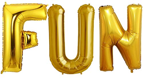 Evisha Fun Alphabet Golden Foil Balloons 1 pc F and 1 Pc U and 1 pc N for All Type of Party Decoration and Celebrations