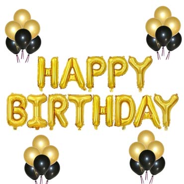 Evisha Golden Happy Birthday 13pcs Foil Balloons and 50 Pcs Golden and Black Metallic Balloons
