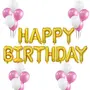 Evisha Golden Happy Birthday 13pcs Foil Balloons and 50 Pcs Pink and White Metallic Balloons