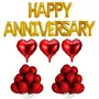Branded Happy Anniversary Foil Balloon Gold Set of 16 with 30 Metallic Red Balloons and 3 Red Foil hert balloons. A perfect Love Theme decoration kit.