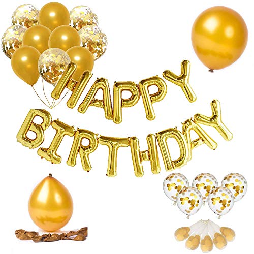 PACKAGE : Happy Brthday Letters x13pcs(16in) ¡Latex Balloon x 5 pcs(12in) ¢Confetti Balloonsx 5 pcs(9in) There are All Decorations Kit You Want for Brthday Party.