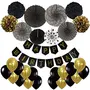 Color:Black Brthday Decoration Cocodeko Happy Brthday Banner Tissue Paper Pom Poms Hanging Paper Fan Set and 20 pcs Balloons for All Brthday Party Decorations Specification: Happy Brthday Banner Quantity:13pcs. Size: 5.9 x 4.7inch. Color: Black and Gold. Material: paper cards. Hanging paper fans: Diameter and quantity. 2 pcs 7.5inch paper fans. 2 pcs 11.6inch paper fans. 2 pcs 16inch paper fans. Color: Black and White. Latex Balloons Quantity: 20 pcs. Diameter: 10inch. Material: Latex. Color: Black and Gold. Paper Pom Poms Size and quantity: 2pcs 10inch Black paper pompoms. 2pcs 10inch Gold paper pompoms. Material: Paper. Easy to DIY and use. Instruction How to DIY the paper pom poms. Step 1 Unfold the tissue paper to the outside with the edges. The strips of tissue paper are joined together in the finished paper flower. Step 2 Carefully pull the layers of tissue paper apart one by one. Step 3 When all the strips have been pulled apart make a more round shape with your hand gently. Step 4 Now hang the paper flower anywhere you want. Package includes 13 x Flags flag banners. 6 x Paper fans. 4 x Paper pompoms. 20 x Balloons