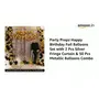 Package includes - Happy Brthday letter foil balloon (Set of gold) + 2 pcs silver fringe curtain + 50 pcs metallic balloons