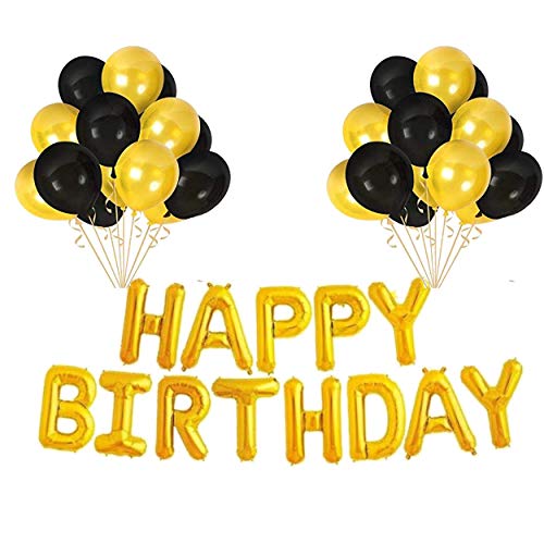 Happy Brthday Foil Letters Balloon Banner with 50 Black Golden Latex Balloon for Brthday Party