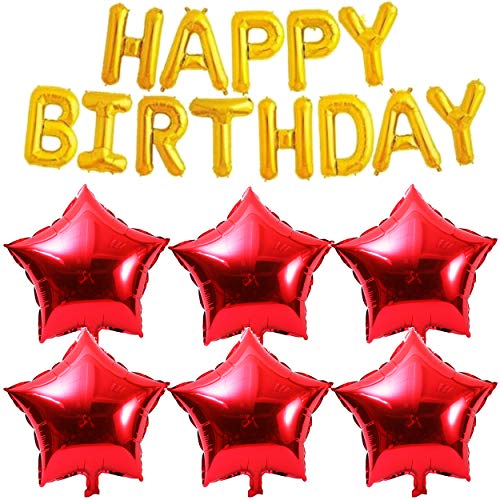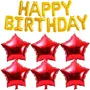 Happy Brthday Foil Letters Balloon Banner with 6 Red Star Shape Balloon for Brthday Party