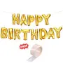 Happy Brthday Foil Metallic Balloons Banners (Gold) with 24 Glue Dots for Easy decor/Decorations
