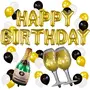 Evisha Happy Birthday Letter Alphabet, Champagne Bottle, 2 Glasses Foil Aluminium and 50 Pcs Golden Black Metallic Balloons