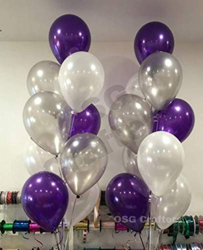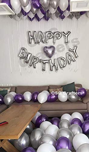 Color:Purple White and Silver | Size:Pack of 30Happy Brthday silver decoration set package contains: happy Brthday foil balloon set-set of 13 letters30 HD metallic balloons in purple white and Silver colors 1 strawnon-toxic & Safe: 100% natural balloons have been rigorously tested quality biodegradable latex that is safe to be used around b or toddler with very little to no smells & will not deflate overnight. Tips & used for: strong durable Brthday party favours 1st Brthday of your kid 18th Brthday 21st Brthday 30th Brthday 50th Brthday of your parents or 75th Brthday of your grandparents. Note: other balloons in pic are not included. Due to different screens please allow the product visibility have a little differences from pictures shown. Because lights used during photo shoot of product. But quality of products are same as Described. Every care has been taken to ensure that the Product details are correct. All dimensions are measured by hand so there might be a very slight variation. Whilst the image is a true representation of the standard product slight variation in colour replication may occur due to lighting/flash during photography or your monitor settings.