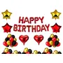 Branded Happy Brthday Red Foil Balloon Set of 13 with 30 Metallic Red/Gold/Black - 10 pcs each Balloons and Red Foil hert balloons + 2 Red Star Foil Balloon + 2 Golden Foil Balloon + 2 Golden Curtains + 1 Multipurpose Ribbon. A complete and perfect Brthday decoration kit. (Pack of 52)