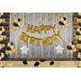 Branded Happy Brthday Golden Foil Balloon Set of 13 with 30 Metallic Silver/Gold/Black - 10 pcs each Balloons and 2 Silver Foil Star balloons+ 2 Silver Curtains + 1 Multipurpose Ribbon. A complete and perfect Brthday decoration kit. (Pack of 47)