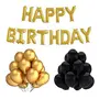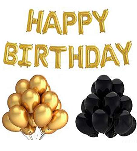 • HAPPY BrthDAY Letter Golden Foil Balloon Set 30 Golden/Black Metallic Balloons with Straw