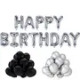 • HAPPY BrthDAY Letter Silver Foil Balloon Set 30 Black/White Metallic Balloons with Straw
