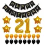 Happy Brthday Party Balloons Supplies & Decorations Set(Gold Number Foil Balloon+50 Gold & Black Latex Balloon+1 Black Happy Brthday Banner+ Four Gold Star Foil Balloons)- 21st Year