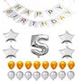 Happy Brthday Party Balloons Supplies & Decorations Set ( Silver 5 Numerical Number 4 Foil Balloon Stars 25 Gold Latex and 25 Silver Latex Balloon (5 Year)